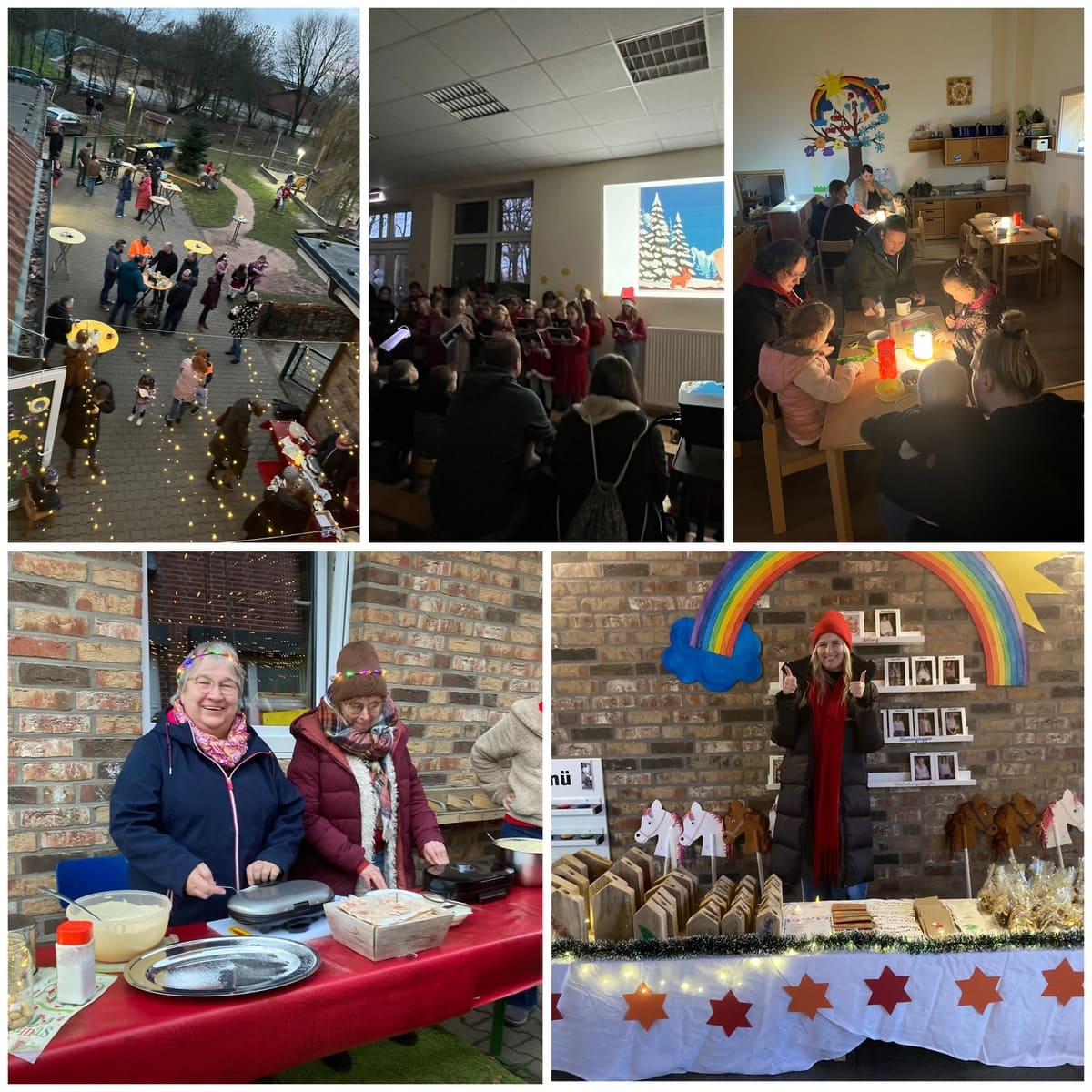 Am 10.12.2025 haben wir im Regenbogenland einen wunderschönen Weihnachtsmarkt in gemütlicher Atmosphäre gefeiert. Auf dem Spielplatz und in den Gruppen war alles festlich geschmückt. Es gab Tee, Kinderpunsch, Bratwurst und Waffeln.